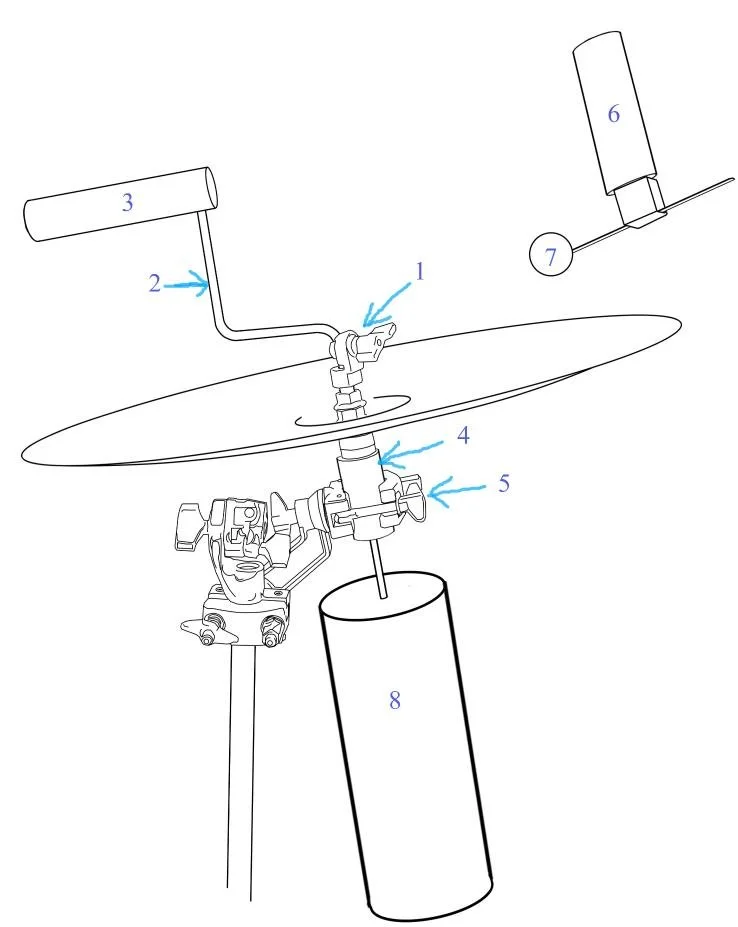 5. MULTI CLAMP: Holds the Mount onto any tubular stand. Clamp onto a cymbal stand, tom stand or tom arm.